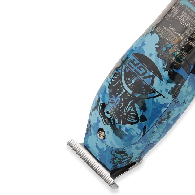 Тример VGR оснащений Т-подібним лезом шириною 40 мм із високоякісної нержавіючої сталі з мінімальним зрізом 0,1 мм. Завдяки такій ширині стрижка та окантовка виконуються набагато швидше, а при стрижці бороди легше обробляти такі складні ділянки, як віскі та вуса.