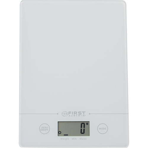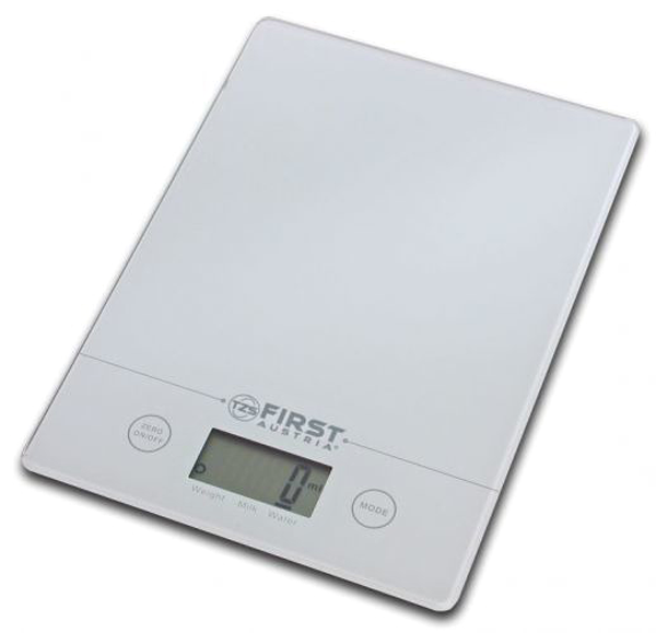 Максимальна вага - 5 кг, ціна поділу - 1 г, вимірювання об'єму рідини, функція "тара", сенсорне управління, цифровий дисплей, автовідключення, розміри: 20х14х1 см