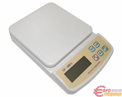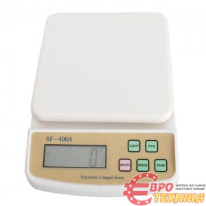 Кухонні ваги SF-400A, тип електронні, дисплей, максимальна вага 7 кг, точність 1 гр, автовідключення, функція перемикання (г / унції), матеріал пластик, живлення 2 х АА
