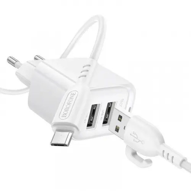 Зарядний пристрій Borofone BAS-41A + кабель MicroUSB White