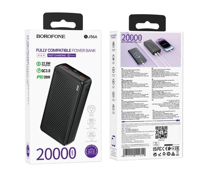 Опис Зовнішній акумулятор Borofone BJ-56 A 20000 мАh Black