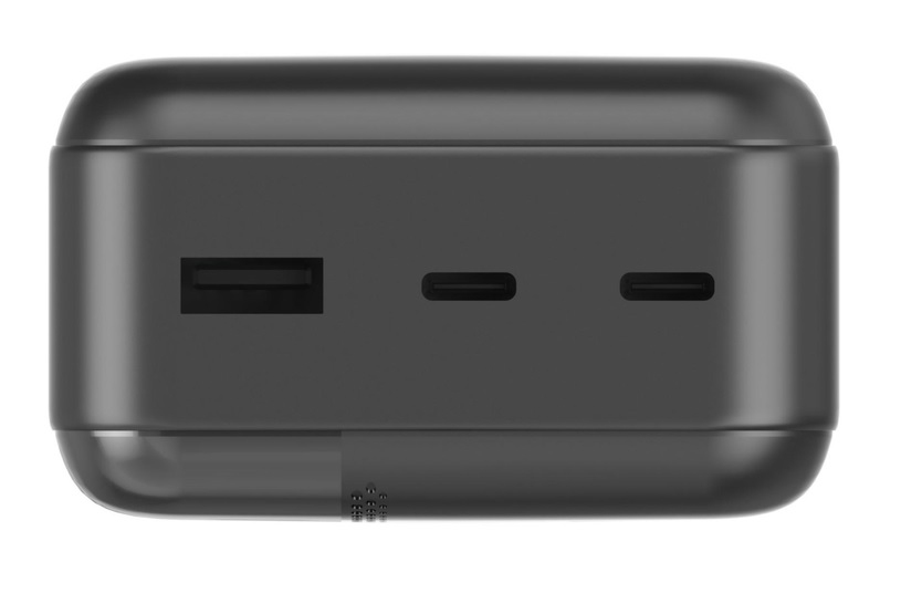 Ємність акумулятора 30 000 мАг, вихідний інтерфейс: 1хUSB-A : 10.5 Вт 2A, 2хType-C 10 Вт 2A. Функція захисту від короткого замикання, надлишкової напруги на виході. Компактні розміри (69 х 40.8 х 145.5 мм), вага 595 грам.