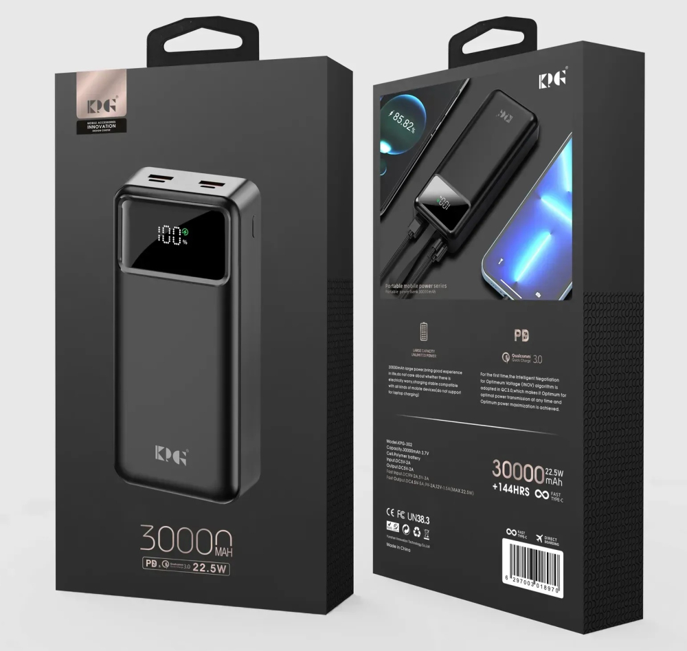 Представляємо Power Bank King Power KPG-302 22.5W PD/Q3.0 30000mAh Black — ваш надійний і потужний супутник для безперебійного живлення всіх ваших гаджетів! ???? Забудьте про розряджені батареї в найважливіший момент: завдяки колосальній ємності 30000 мАг цей зовнішній акумулятор забезпечить багаторазове заряджання вашого смартфона, планшета чи навіть невеликого ноутбука. King Power KPG-302 підтримує найсучасніші технології швидкої зарядки, включаючи Power Delivery (PD) та Quick Charge 3.0 (QC 3.0), забезпечуючи максимальну вихідну потужність 22.5W. Це означає, що ваші пристрої заряджаються блискавично, заощаджуючи ваш час. ???? Корпус виконаний у елегантному чорному кольорі (Black), що додає аксесуару стильного та професійного вигляду. Power Bank оснащений різноманітними вихідними інтерфейсами (1хType-C та 2хUSB-A), що дозволяє заряджати до трьох пристроїв одночасно. ???? Для поповнення заряду самого Power Bank передбачені вхідні порти Type-C та Micro-USB, що робить його універсальним та зручним у використанні. Ідеально підходить для активних користувачів, мандрівників, а також тих, кому потрібен великий запас енергії в поїздках або під час тривалих відключень світла. Вибирайте King Power KPG-302 для максимальної автономності та впевненості у кожному дні. Купити павербанк 30000 мАг King Power Black з PD та QC 3.0 за вигідною ціною можна прямо зараз! Надійність, швидкість та велика ємність — ось що робить King Power KPG-302 незамінним аксесуаром. ????️ Отримайте свій ідеальний зовнішній акумулятор сьогодні! ⭐