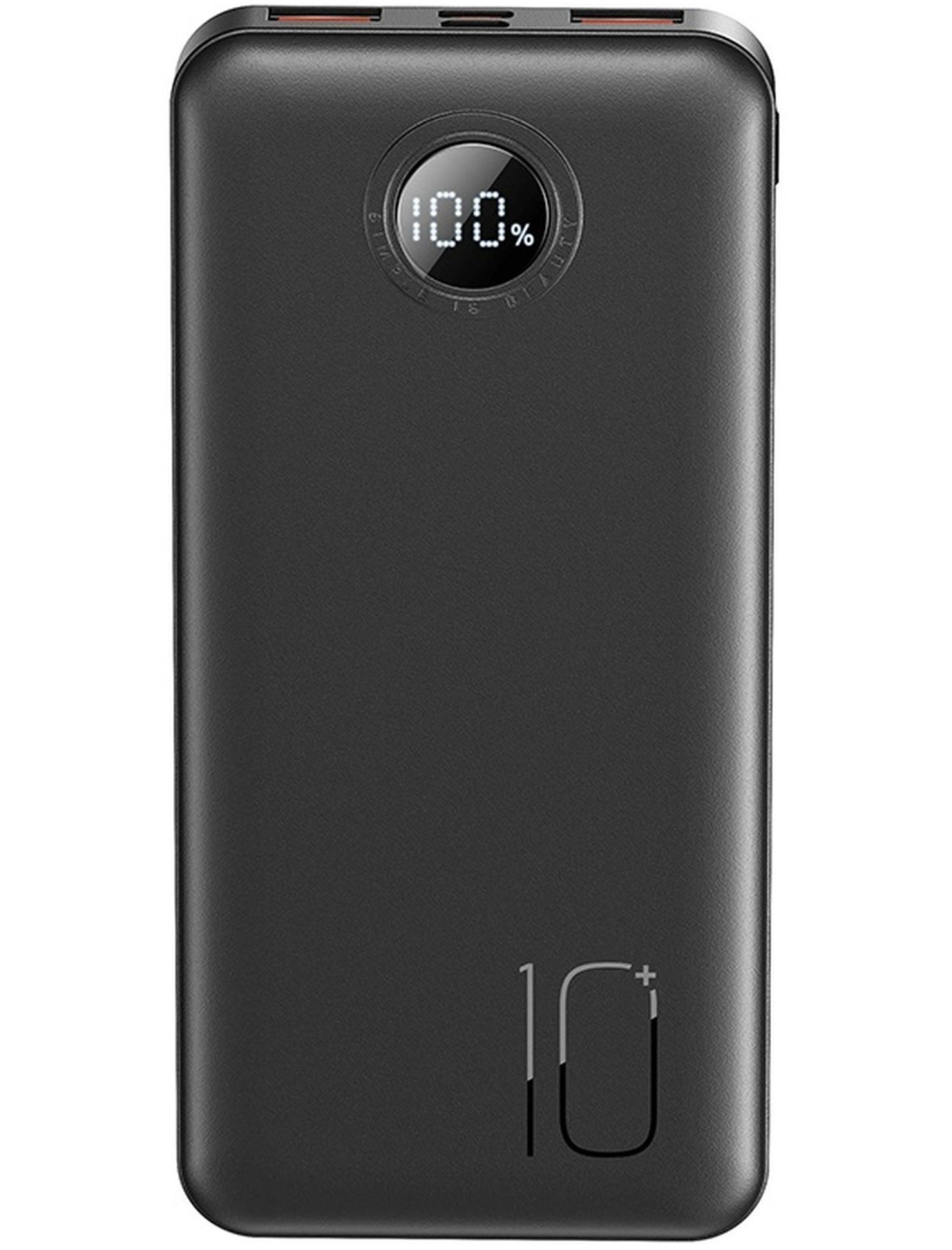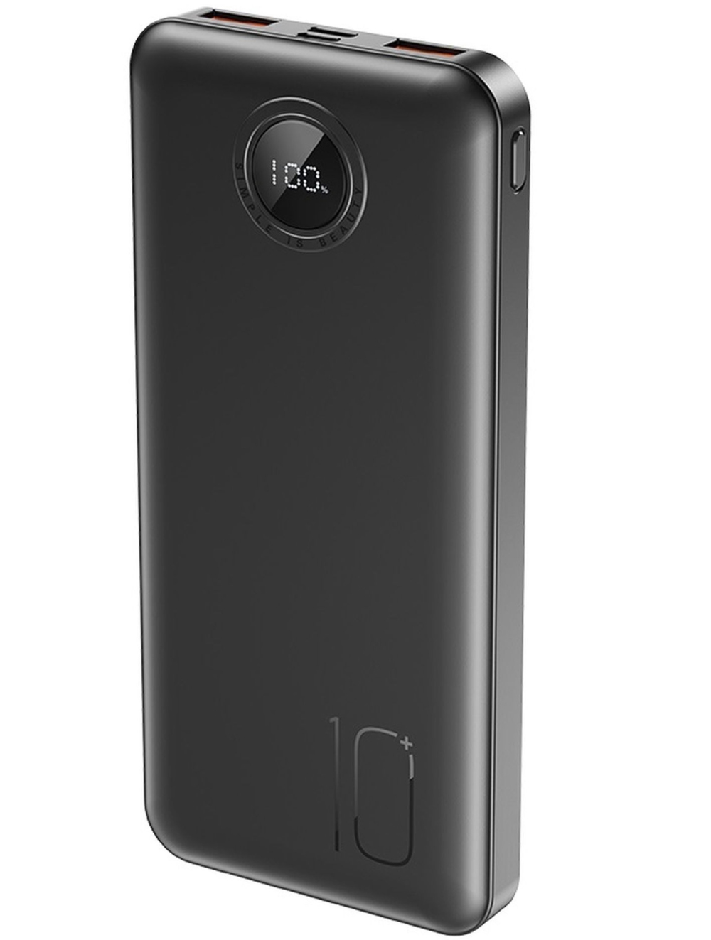 Ємність акумулятора 10 000 мАг 22.5 Вт, потужність 22.5 Вт, LCD дисплей, швидке заряджання, роз'єми 1 х micro-USB, 1 х Type-C, 2 х USB, вихід 5V/3A, 9V/2A, 9V/2,22A, 9V/2,22A, 10V/2,5A, 12V/1,5A, 12V/1,67A, індикація заряджання. Особливості: захист від перевантажень, дисплей, швидка зарядка.